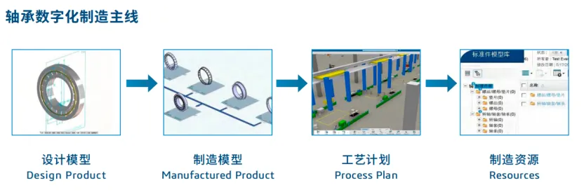 基于3DEXPERIENCE平台,构建覆盖轴承数字化设计、数字化制造、数字化工厂及数据智能分析等完整流程的数字孪生系统。