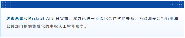 达索系统OUTSCALE首席执行官Philippe Miltin表示:“与Mistral AI的合作进一步推动了我们提供自主可控、安全可靠和性能卓越的云解决方案的愿景,助力欧洲行业、政府和社会实现转型。我们将携手加速并扩大主权云在欧洲AI领域的应用,满足受监管行业和公共部门在数据安全、透明度、可控性和性能方面的核心需求。”