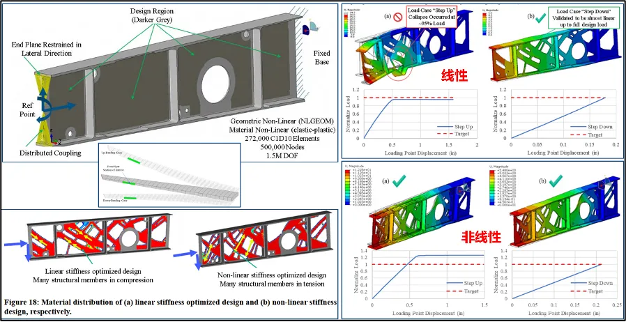 对于如下腹板的优化案例,非线性优化的结果,相比线性优化的结果,承载能力更强。