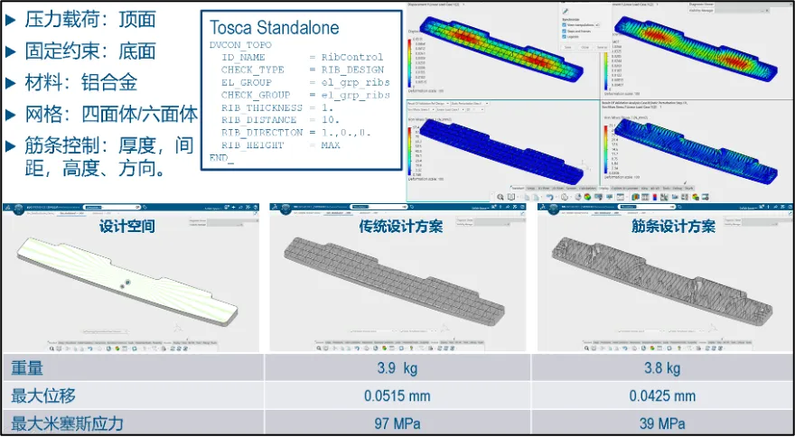 从2022版本开始,Tosca拓扑优化支持筋条设计制造约束,非常适合塑料件,加筋结构的设计。后续几个版本持续提升筋条设计制造约束功能。